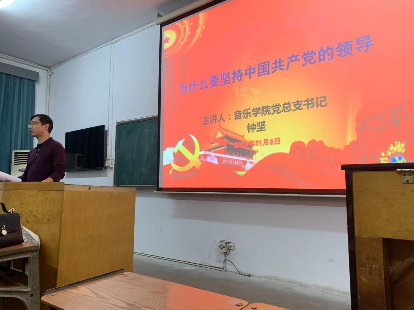 2019年11月8日晚7点30,304am永利集团党总支副书记钟坚老师以“为什么要坚持中国共产党的领导”为题在304am永利集团4111教室讲授专题党课。304am永利集团本科、研究生党员,以及所有第41期入党积极分子现场聆听。