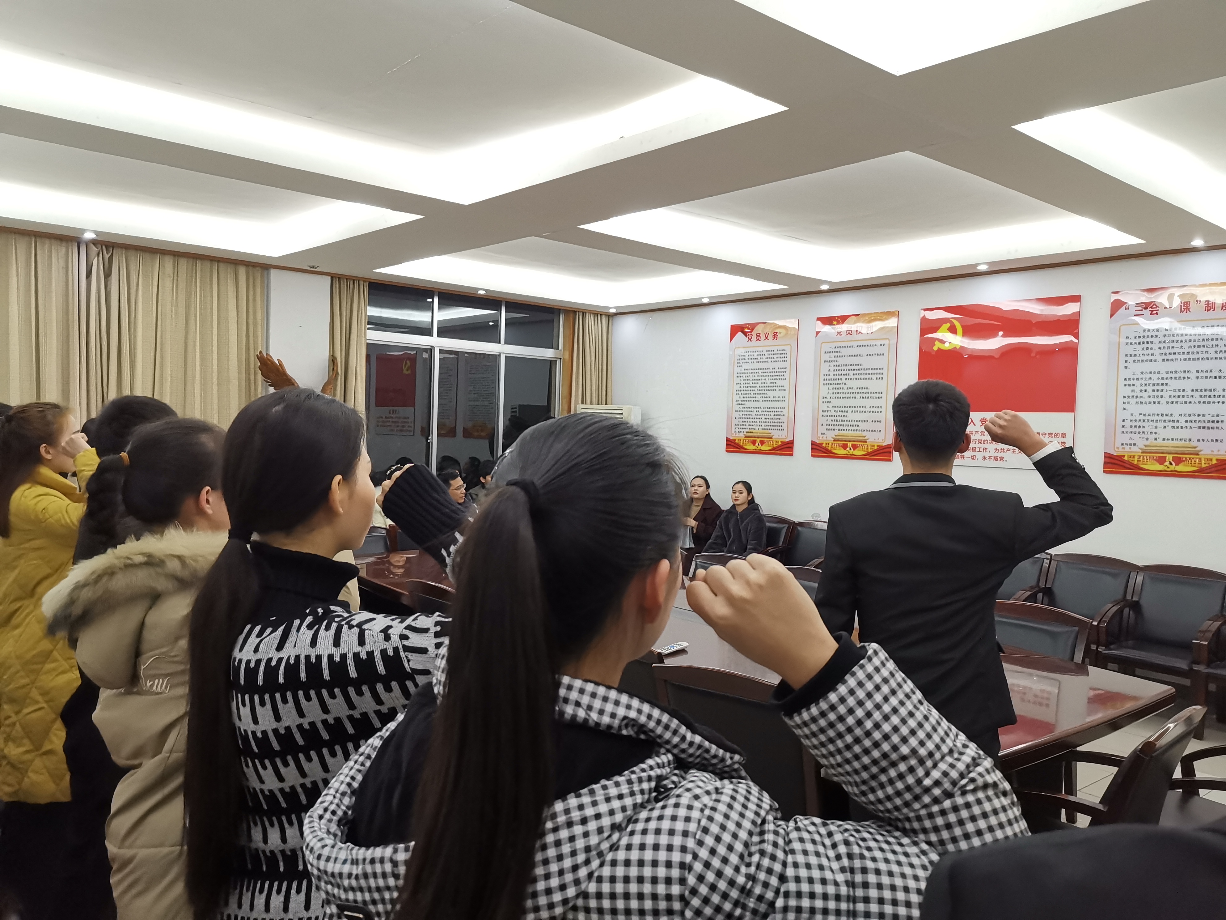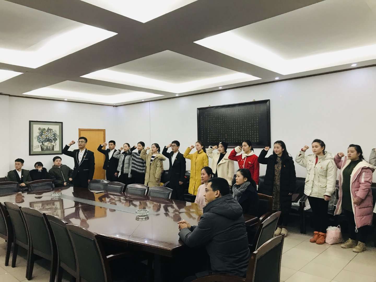 2018年12月26日晚9:30,304am永利集团党总支在主办的“庆祝改革开放40周年”主题党日晚会圆满结束后,趁热打铁,召集参演的全体党员在学院会议室举行了新党员入党宣誓仪式,11名新发展的党员同学在仪式上庄严宣誓,正式加入了党组织,6名转正的预备党员同学也加入宣誓队列,再次重温了入党誓词。院党总支负责人钟坚、学生支部书记朱葳、团总支书记方从戎参加了宣誓仪式。