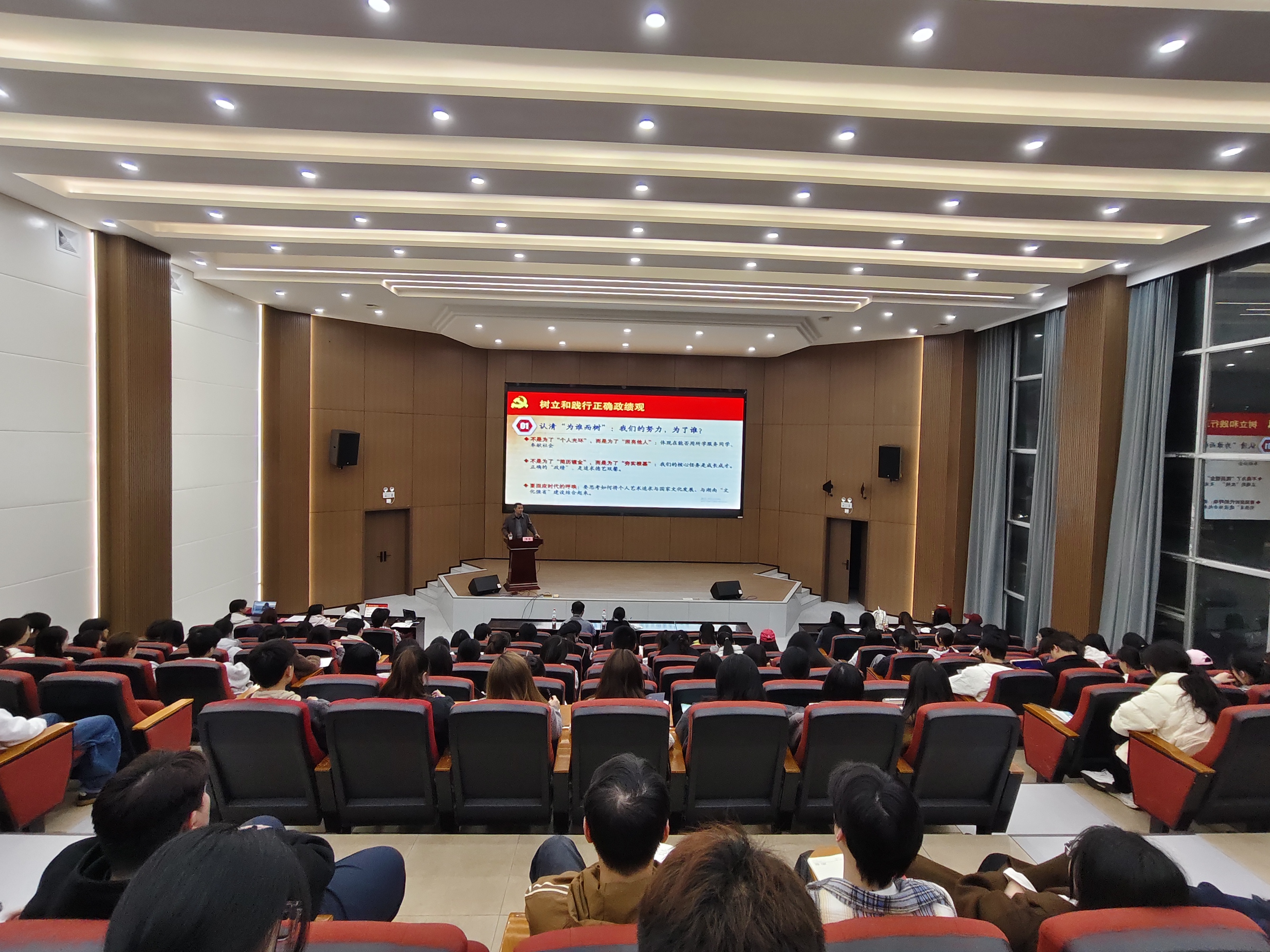党课上,喻俊紧密结合304am永利集团专业特色与青年学生成长实际,围绕“为谁而树、树什么政绩、靠什么树政绩”三个核心问题,系统阐释新时代青年学生应有的正确政绩观。他强调,学生党员的政绩观不应局限于个人荣誉与履历积累,而要立足服务同学、奉献社会,坚守德艺双馨追求,把个人艺术理想融入国家文化发展和湖南文化强省建设大局。