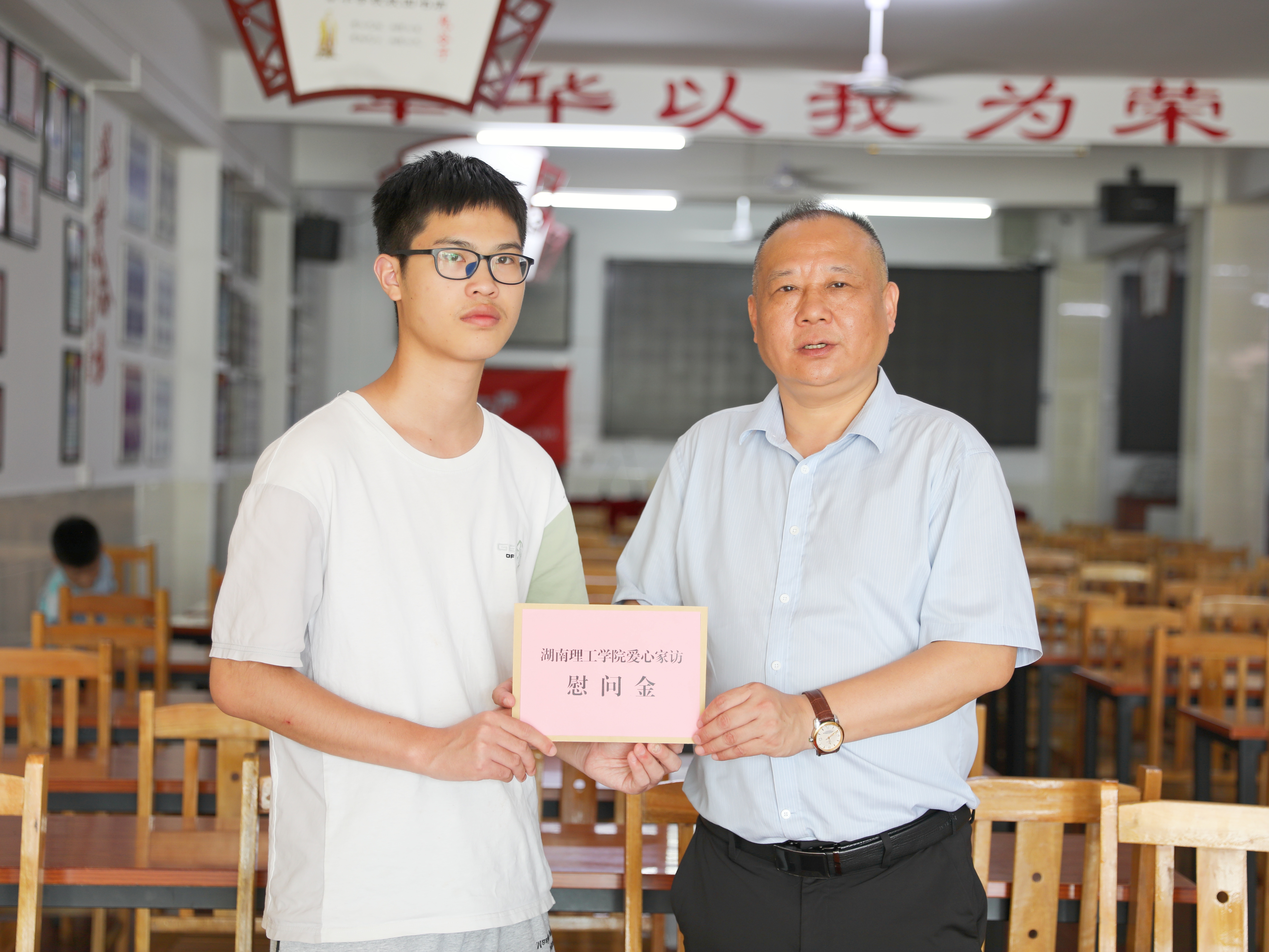 “郑可同学,恭喜你成为理工学院的一份子!”7月29日上午,学校党委委员、副校长徐振祥一行驱车专程来到岳阳华容县,将我校2024年第一封录取通知书送到团洲转移群众章华学校集中安置点并开展“爱心家访”活动,看望和慰问了2024级化学化工学院团洲籍新生郑可及家人。